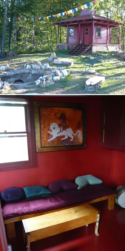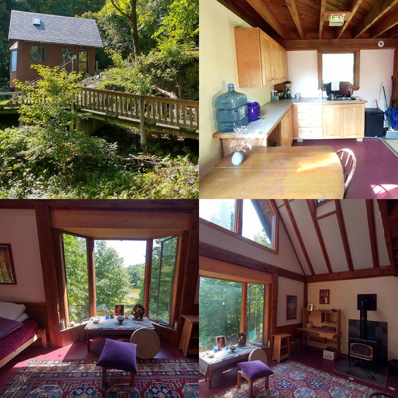 This cabin was built for the purpose of doing Guardian practices. Many practitioners rent this cabin for 1-3 nights at the beginning of their personal retreats. This cabin does not have cooking facilities in it.